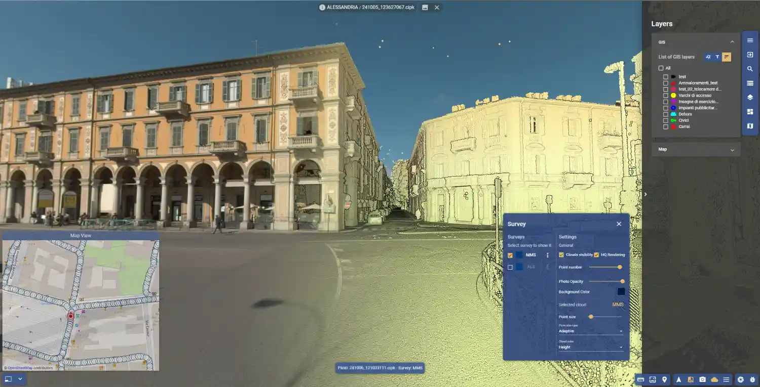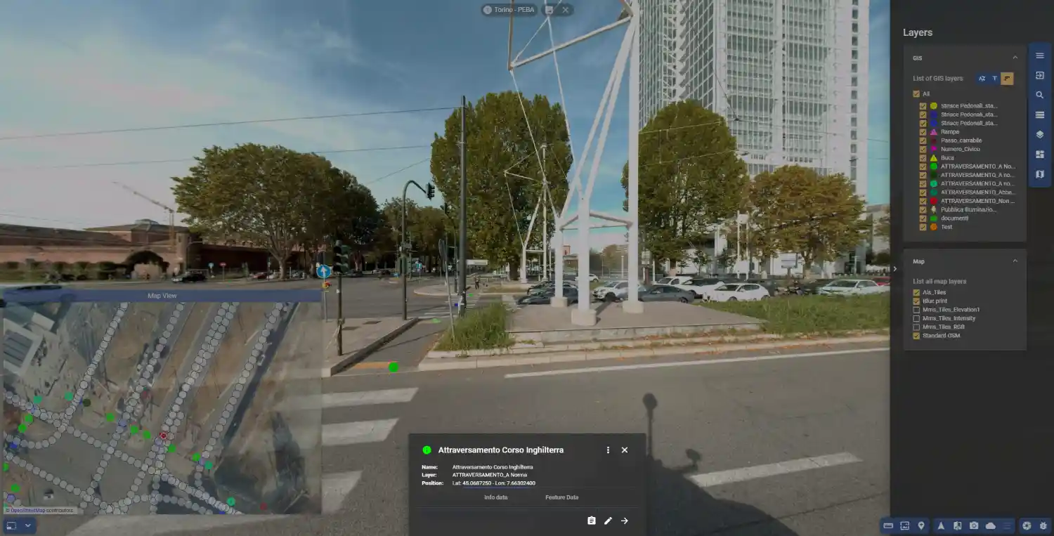 La piattaforma permette la gestione e integrazione di nuvole di punti e immagini sferiche 360° metriche acquisite attraverso strumentazione laser scanner statica, mobile mapping o droni, garantendo una base di dati solida e accurata: la navigazione multimodale 2D/ 3D rende l’esperienza utente intuitiva e immersiva.