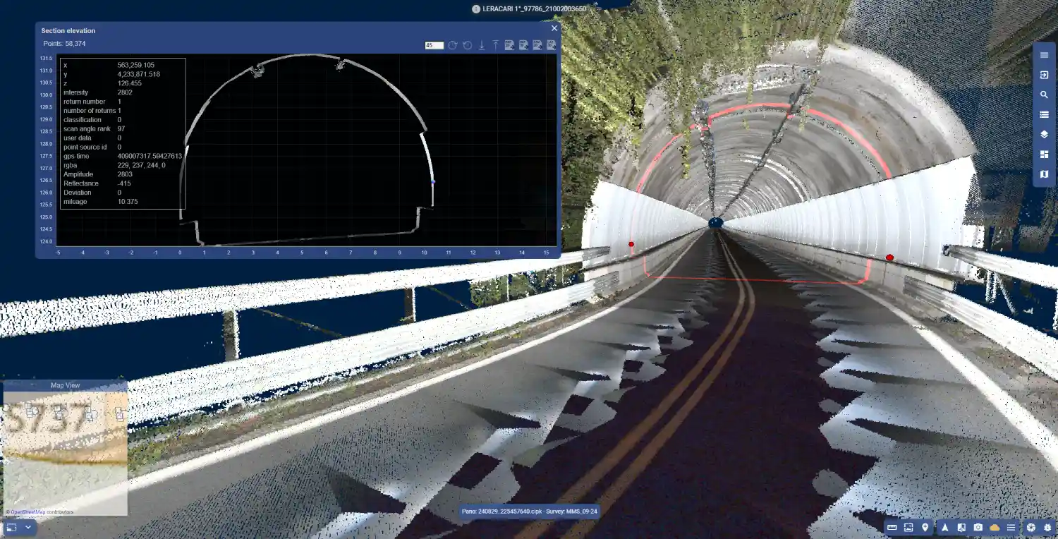 Estrapolazione di dati bidimensionali e tridimensionali. Rilievo MMS (Mobile Mapping System) di tunnel autostradali.